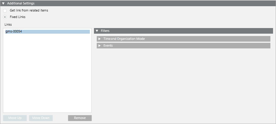 Fixed Links: This option lets you manually link all the resources that you want to display along with this procedure step during assisted treatment. You can link several objects by dragging the corresponding objects from System Browser to the Links area. You can change the order of the links with the Move Up and Move Down buttons or use the Remove button to remove any unwanted links.