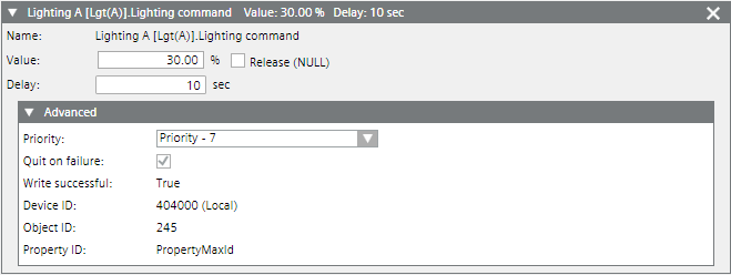 NOTE: In principle, any priority between 1-15 can be selected. Other BACnet operator units also use priority 8 though. So that any BACnet operator unit can reset the override to priority 8. - In the Value drop-down list, select the Operating mode: