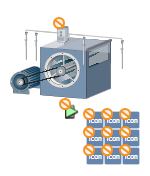Let us consider, for example, a data point used to control the fan from a ventilation plant. The Graphics Generator selects the correct symbol based on the function designation FN=Fan1St (single-stage fan). The instance designation AN=FanSu (Supply air fan) indicates that the fan symbol must be drawn in the supply air duct.