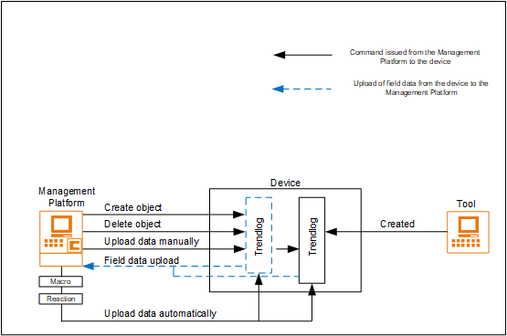 The Trendlog within the blue dashed box represents the Trendlog created on the Management Platform and which can be deleted.