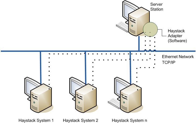 The Haystack systems can communicate with the management station over an Ethernet network via a software adapter typically installed on the management station.