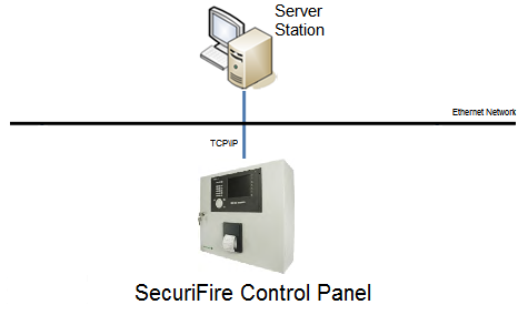 The SecuriFire control panels can communicate with the management station over a Modbus TCP or BACnet TCP protocol connection.