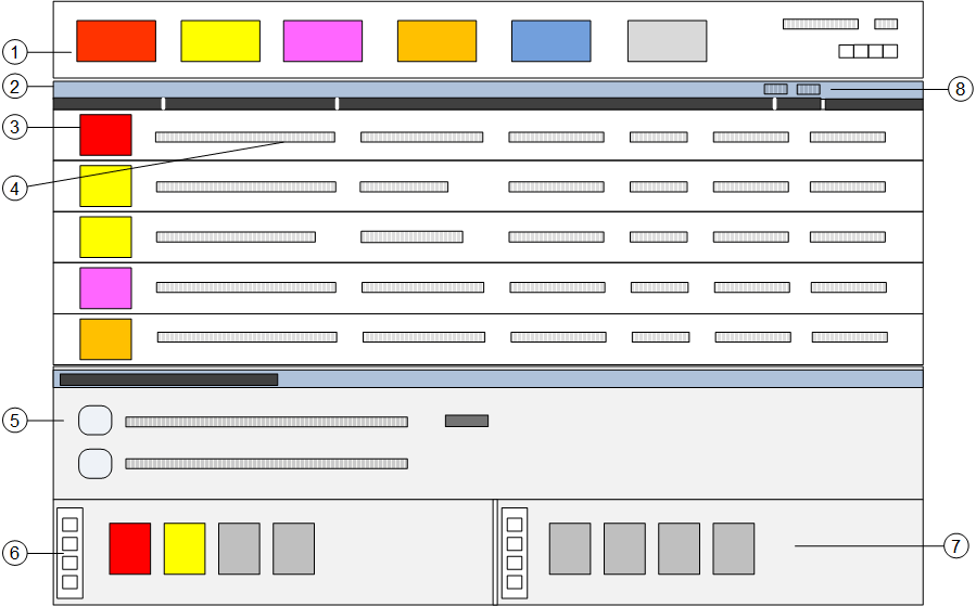 1 | Summary bar | Contains a set of event lamps that provide an overview of the events in the system. For more information, see Overview. |