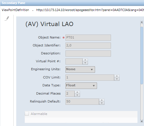 Alarmable | Displays any BACnet intrinsic alarming for the point. |