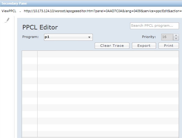 Search PPCL program | Allows you to enter a search string. Matching words or character strings in the program code will be highlighted in the editing space. |