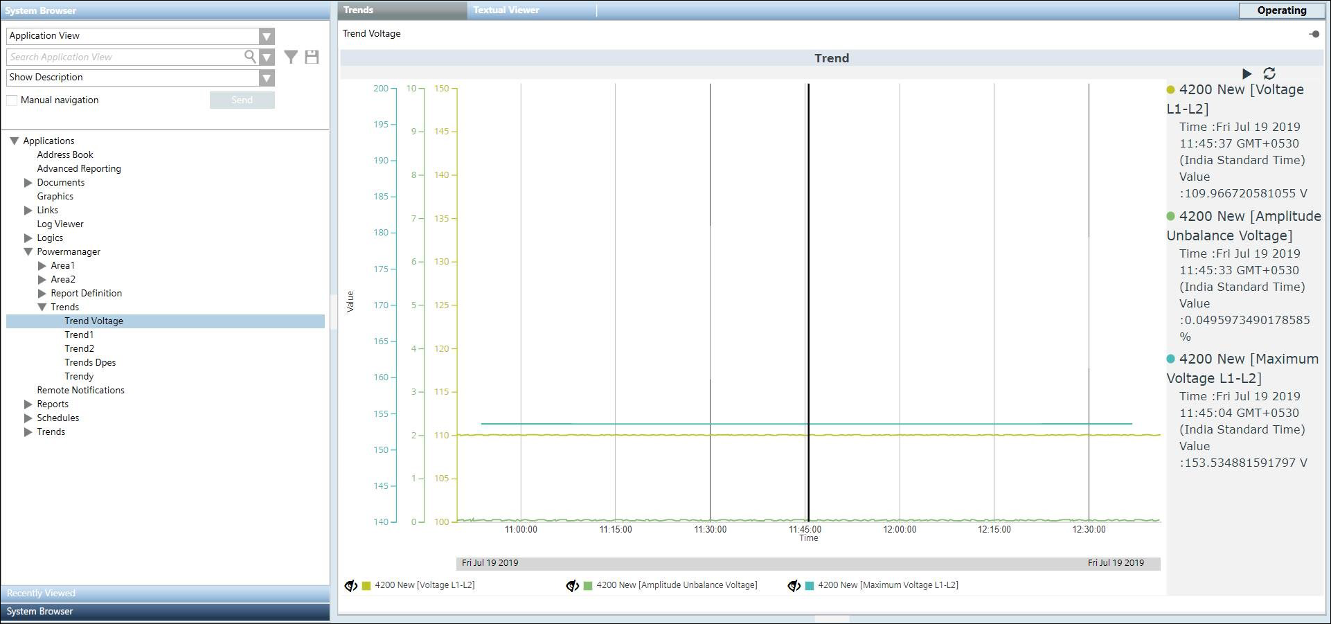 When you click the Trends node, it displays the trend series for the measurement points that are configured for the selected trend.