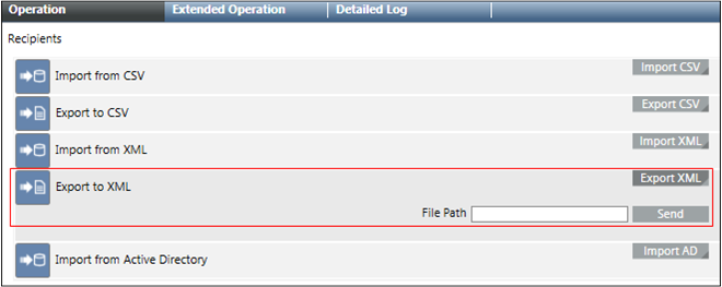 2 | Export to XML | Allows the user to export recipients to an XML file. |