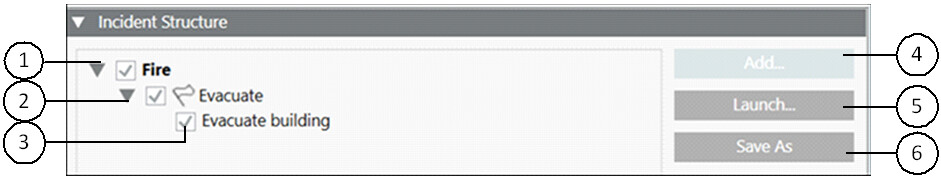 - Incident Structure: Displays the structure of the initiated incident, for example, the name of the incident, the launch groups and the notification templates associated with the incident.