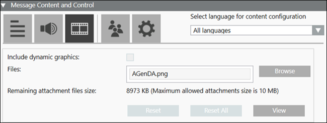 NOTE: The maximum allowed attachment size is 10MB. - Reset: Resets only the multimedia file configured for the currently selected language.