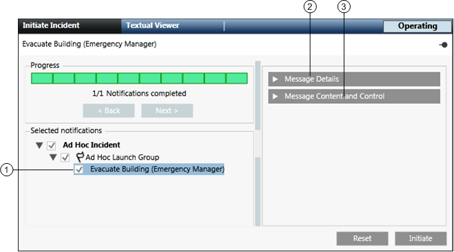 1 | Selected notifications | Displays the incident, the associated launch group, and the associated notifications (message templates). |
