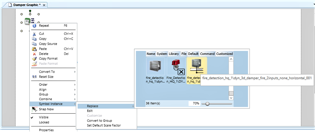 NOTE: If two single-input devices are used for a damper, proceed as follows: - In step 3, drag the first device into the graphic, replace the symbol as described, and drag the first input into the corresponding property.