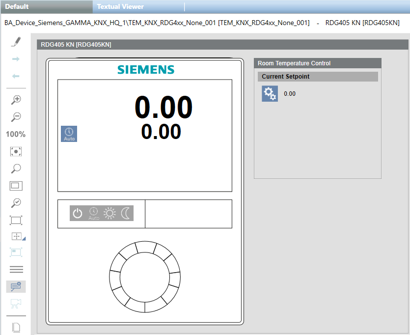 In Engineering mode, this is the graphic template for the RDG400KN and RDG405KN room thermostats.