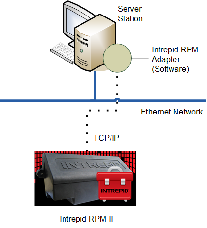 The Intrepid RPM system can communicate with the management station over an Ethernet network via a software adapter typically installed on the management station.