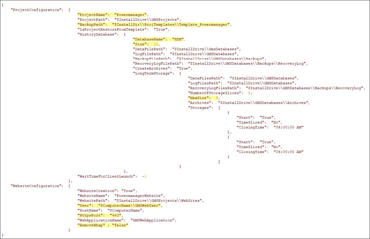Copy "AutomaticProjectConfiguration.json" file from path: “\InstallFiles\Upgrades\EP\EM\Powermanager\AddSW\PowerManagerInstallation\” on following folder path: “\InstallFiles\Upgrades\EP\EM\SMC\PostInstallation\AutoProjectStartup\” - Change the project name from "Powermanager” to appropriate value if required: "ProjectName": "Powermanager"