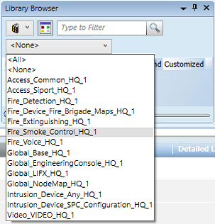 NOTE: You will not need the Element Tree, Depth, Evaluation Editor and other panes, which you can deselect. - In Library Browser, select the Fire_Smoke_Control_HQ_1 library.