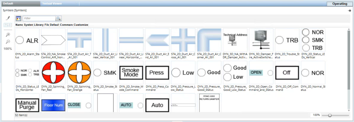 - Damper symbol. It represents the status of the physical device using I/O device’s inputs.