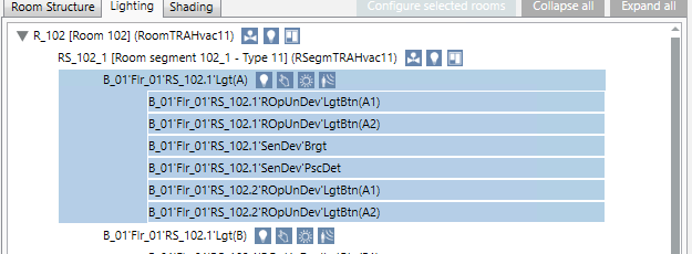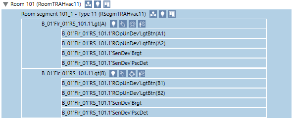 - There are device names in the room manager editor's room information list that deviate from default naming. Unknown device names are indicated in blue font.
