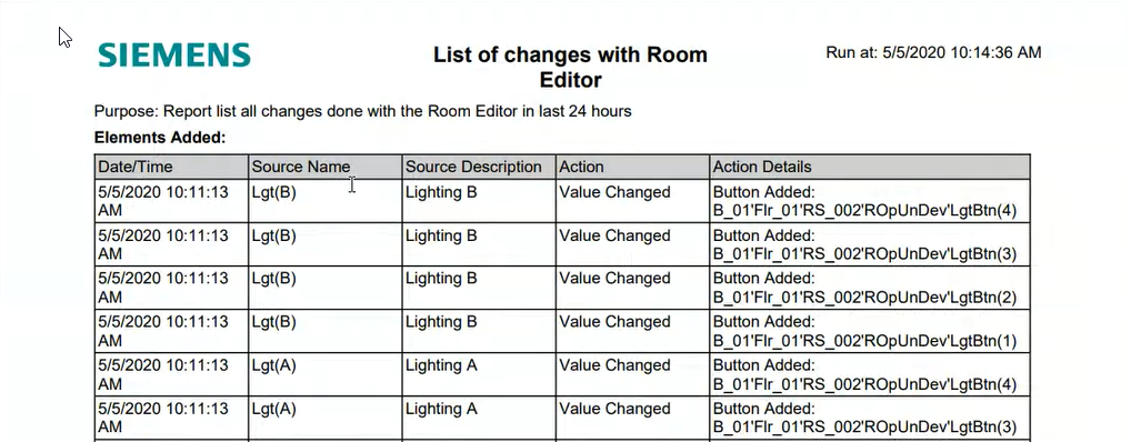 Scenario: You must document the changes. The standard report generates a change report for the last 24 hours.