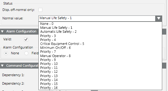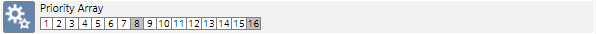 - Priority Array:Priority Array control is displayed in the Operation / Extended Operation tab. This control may only be used for the BACnet property Priority_Array.