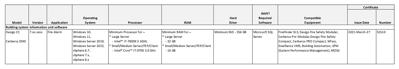 UL 60950/UL 62368-listed Building System Information Unit (BSIU) computers can be used in Desigo CC fire systems according to the following requirements.