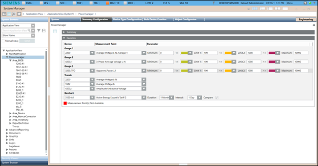 In Engineering mode, when you select the Powermanager root node, you must first configure the parameters of the System Configuration tab that displays by default.