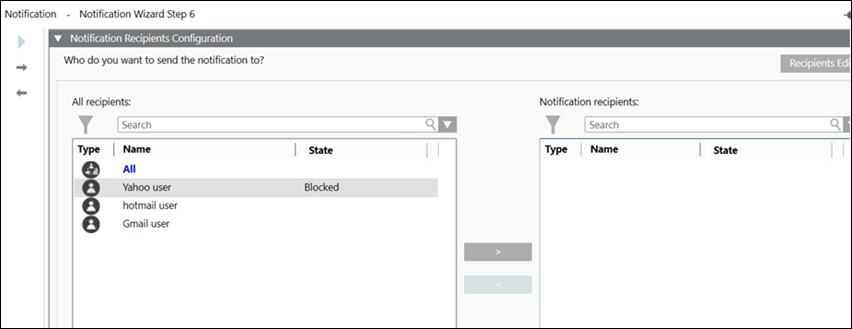 NOTE: You can configure new recipients using the Recipients Editor button. Refer to the Recipients topic for more information on adding recipients. - Click Next page