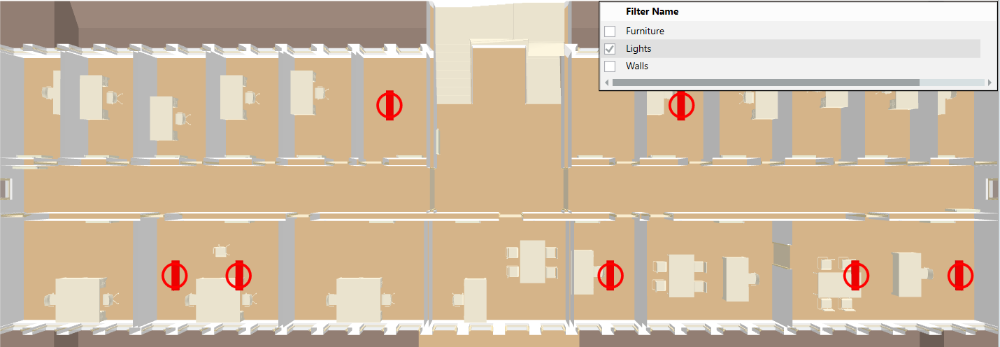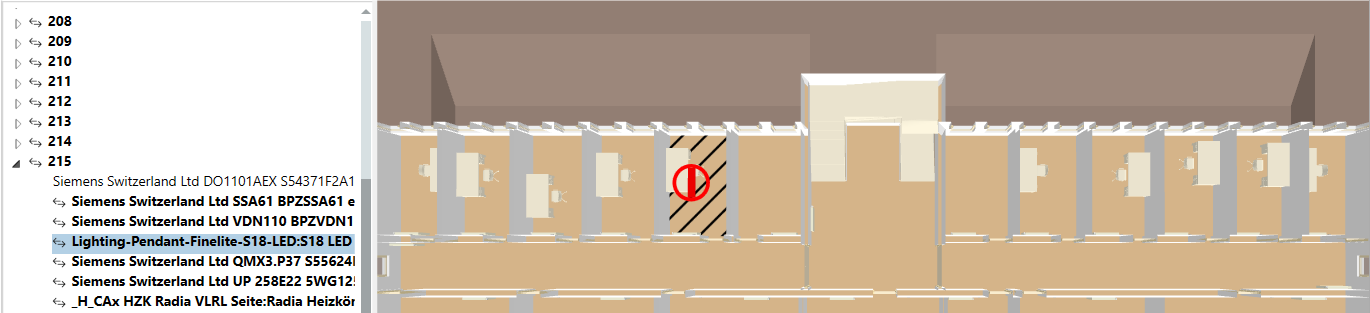 Scenario: After finding the BIM object model for lighting objects, you can emphasize all lighting objects associated with this BIM object model based on the lighting object.