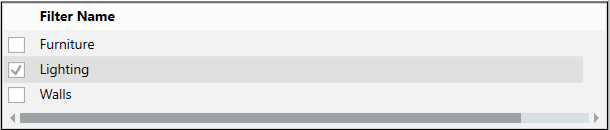 - In the Filter Name dialog window, select Lighting and Furniture.