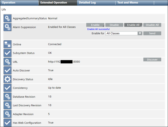 Subsystem Status | Shows default values that can be changed by the adapter developer: