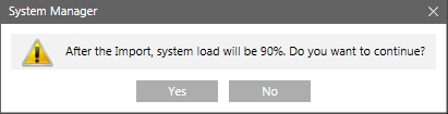 NOTE: In case of an import operation that exceeds the safety threshold, a warning message informs you how close you are to the limit (for example, 90%) and you can then decide whether or not to proceed with the import. - If the number of IEC61850 objects exceeds the system limits (defined by the System Objects Limit property), then the System Load property indicates Alarm and displays in the Extended Operation tab.