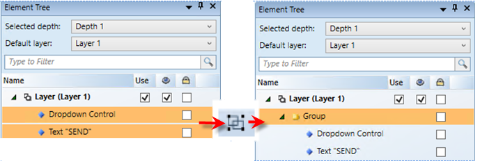 - Text “SEND” and Dropdown Control are now children of the Group.