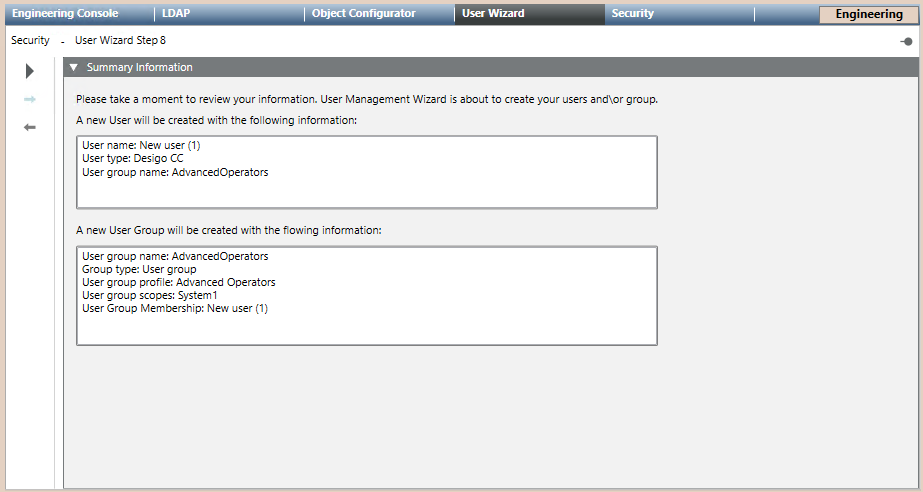 - If you also chose to create a new group, it is available in System Browser under Project > System Settings > Security.