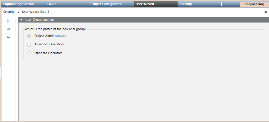 - Select the type of user group you want create. These user group profiles have preconfigured rights for events and applications; you can then change the default configuration using the Security tab.