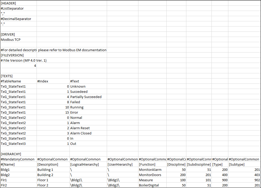 - A comment line is marked with the character #. # marks the starting of a row with headers. # denotes comments, meaning that the Importer ignores the row.