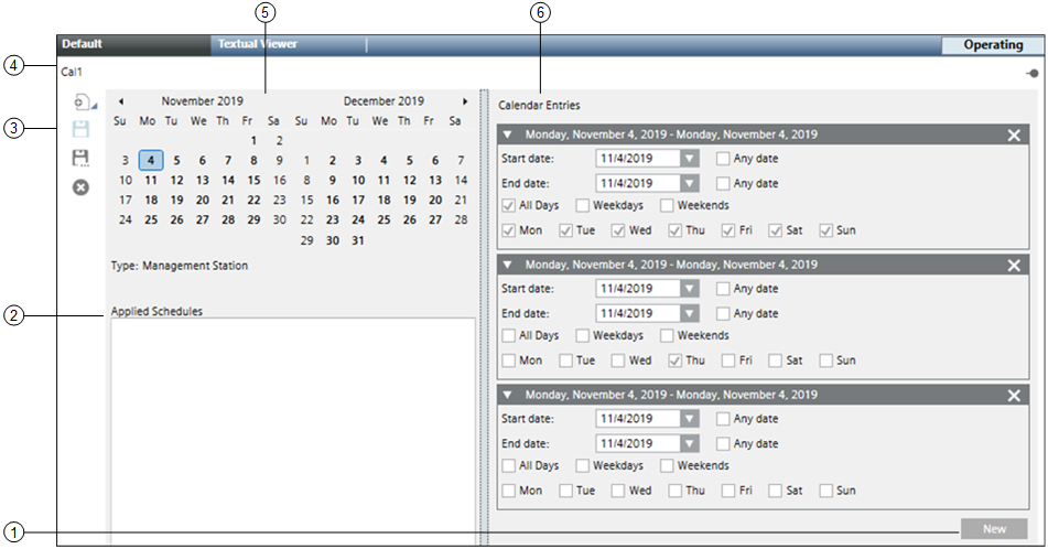 6 | Calendar Entries | Displays a list of entries representing start and end dates and recurrence patterns. |