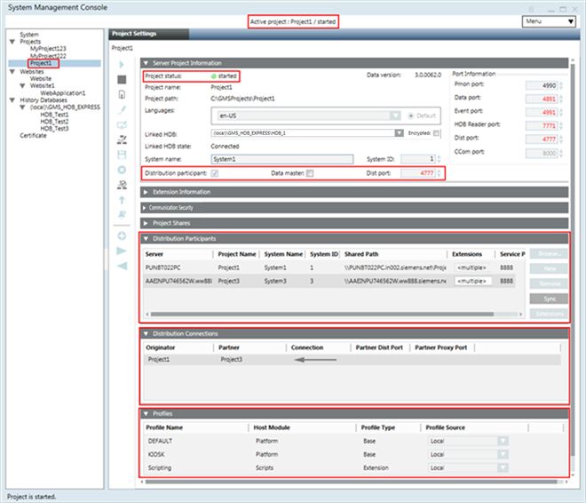 22. Repeat steps 4 to 13 for configuring the distribution participant project as Project1.