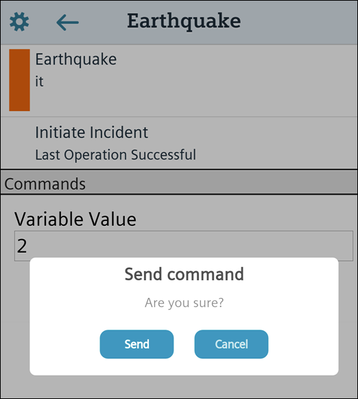 - The selected incident is initiated. All commands in Notification are visible in Mobile App.