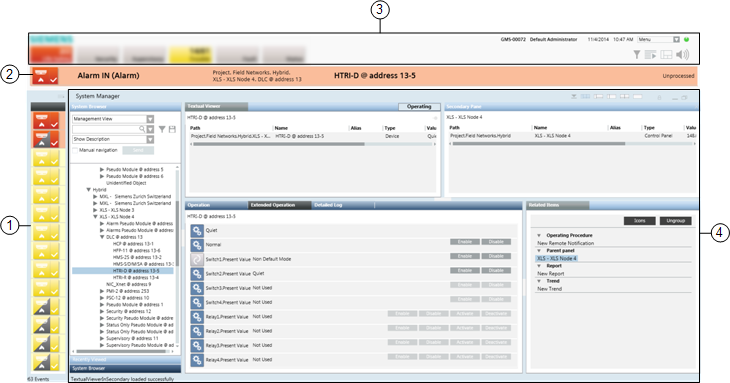 2 | Event Detail bar | Present in some configurations only. Highlights the most critical event in the system. |