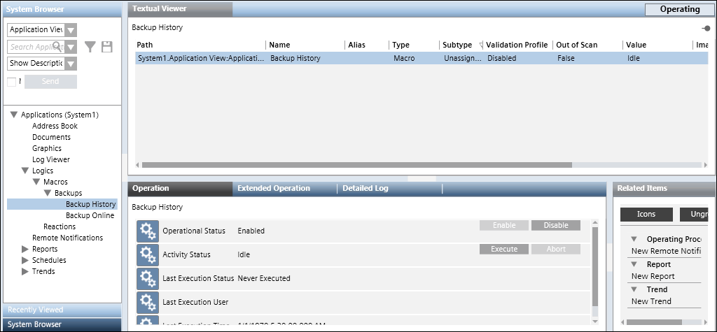 - Select Applications > Logics > Macros > Backups > Backup History.