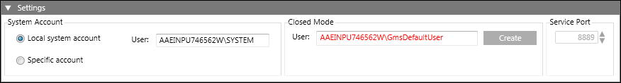 - The Service port number displays in grey if the GMS SMC Project Data Service is stopped and in red when started, indicating that the port is in use, but unsecured.