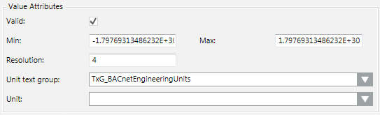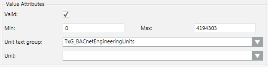 6 | Unit text group | List of available text groups. New or updated text groups must be refreshed by pressing the F5 key. For value-scaled units, the TxG_EngineeringUnits must be selected. |