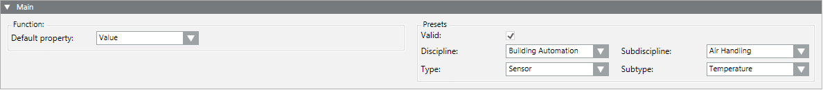 Each function requires a default property (for example, Value). The assignment can only be carried out after the individual properties are created in the Properties expander.