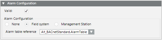 - From the Alarm table reference drop-down list, select the alarm table you want to apply.