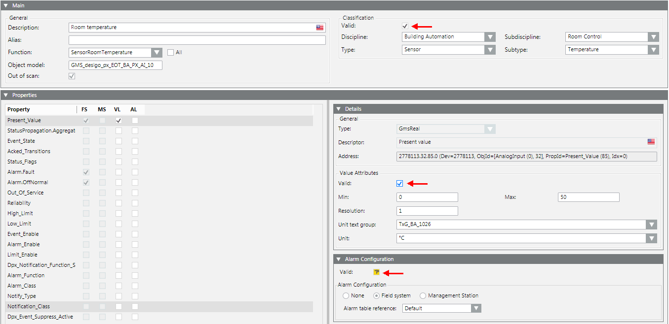 when editing. This display for the inheritance function is used for the Main, Properties, Details, and Alarm Configuration expander.