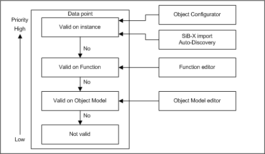 (gray check), the information has a higher priority than the information for the functions or the object model.
