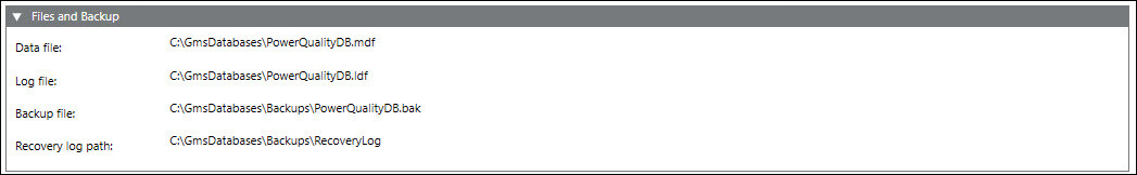 Backup file | Folder and file name of the PowerQuality database backup file |