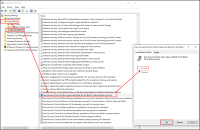 - Select the User Account Control: Admin Approval Mode for the built-in Administrator account policy.