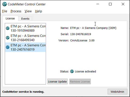 - If the (ETM pc - A Siemens Company (OEM) 130-2407616019) license is not present, do the following: